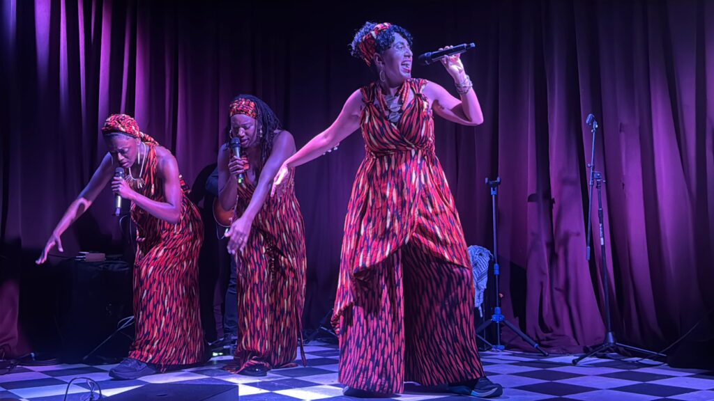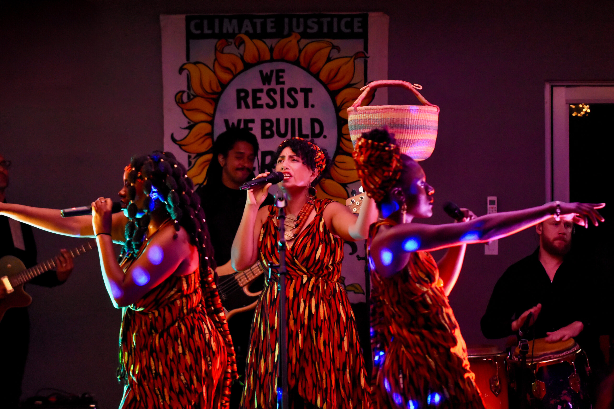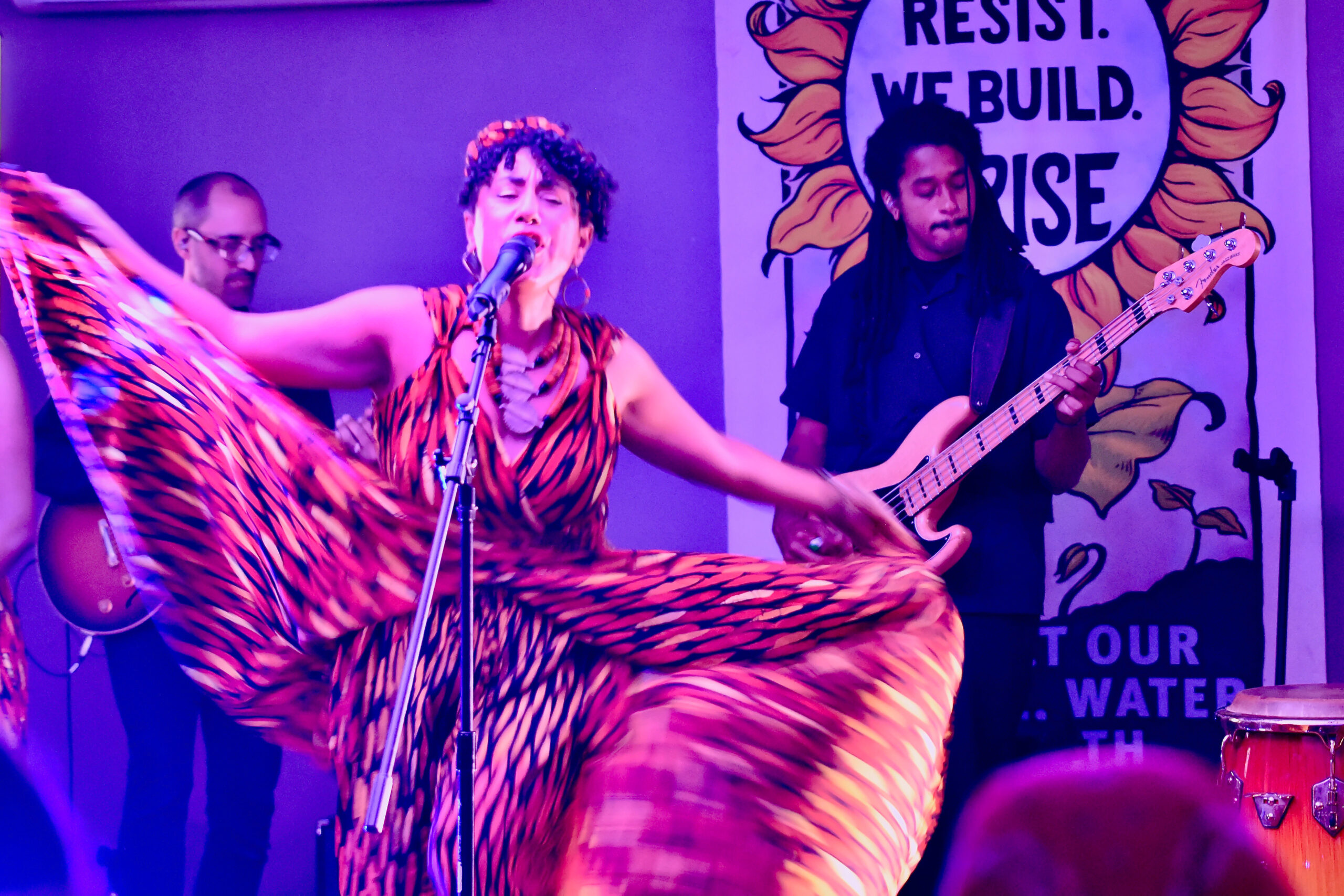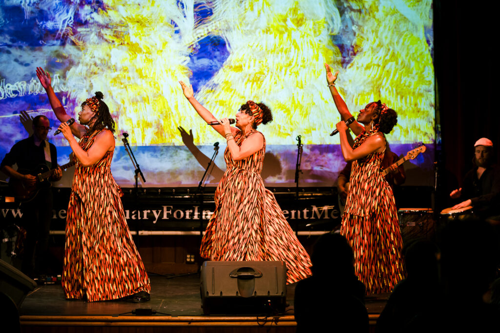 At the heart of the pilgrimage was my multimedia performance Fever Pitch, a fusion of live music, dance, and video centered on the fight for climate justice. This show is the culmination of my two-decade journey as an artist-activist and is rooted in the understanding that art can both reflect and reshape the world. We brought this show to select community spaces along the pilgrimage route, offering it for free or sliding scale, and each performance included a post-show dialogue.