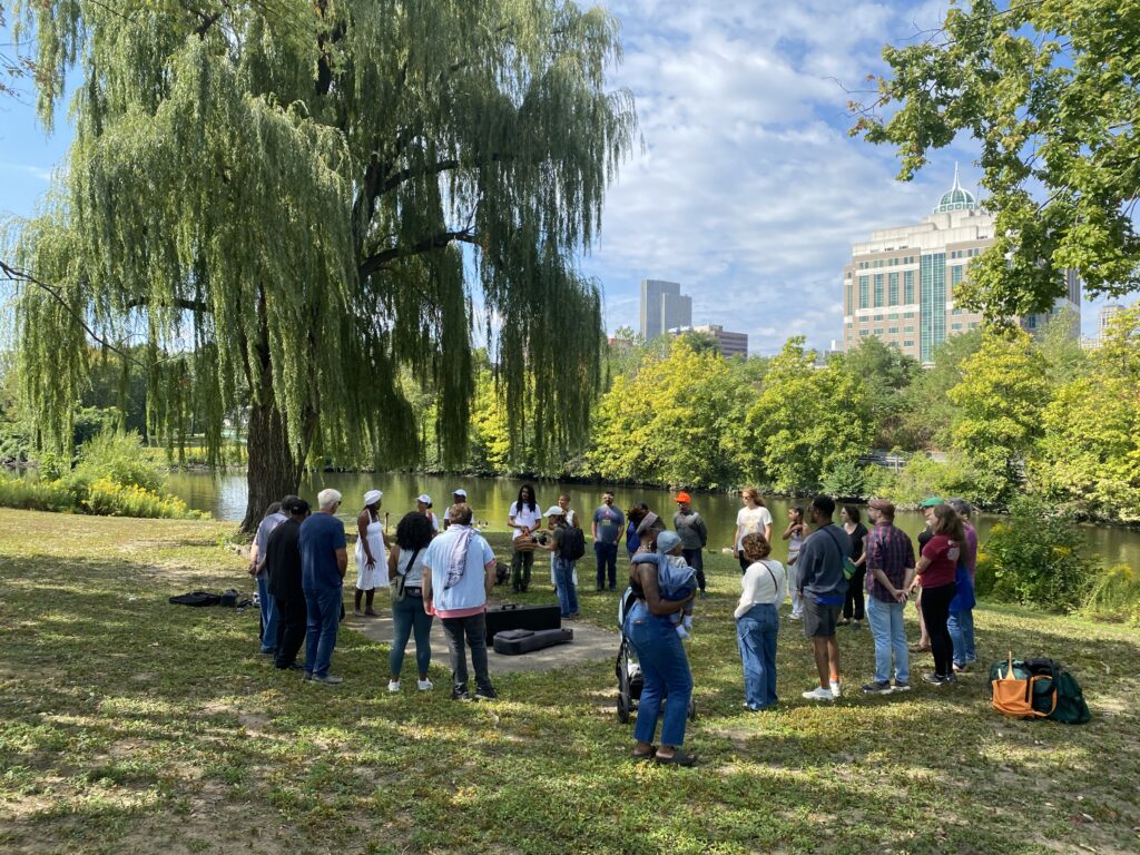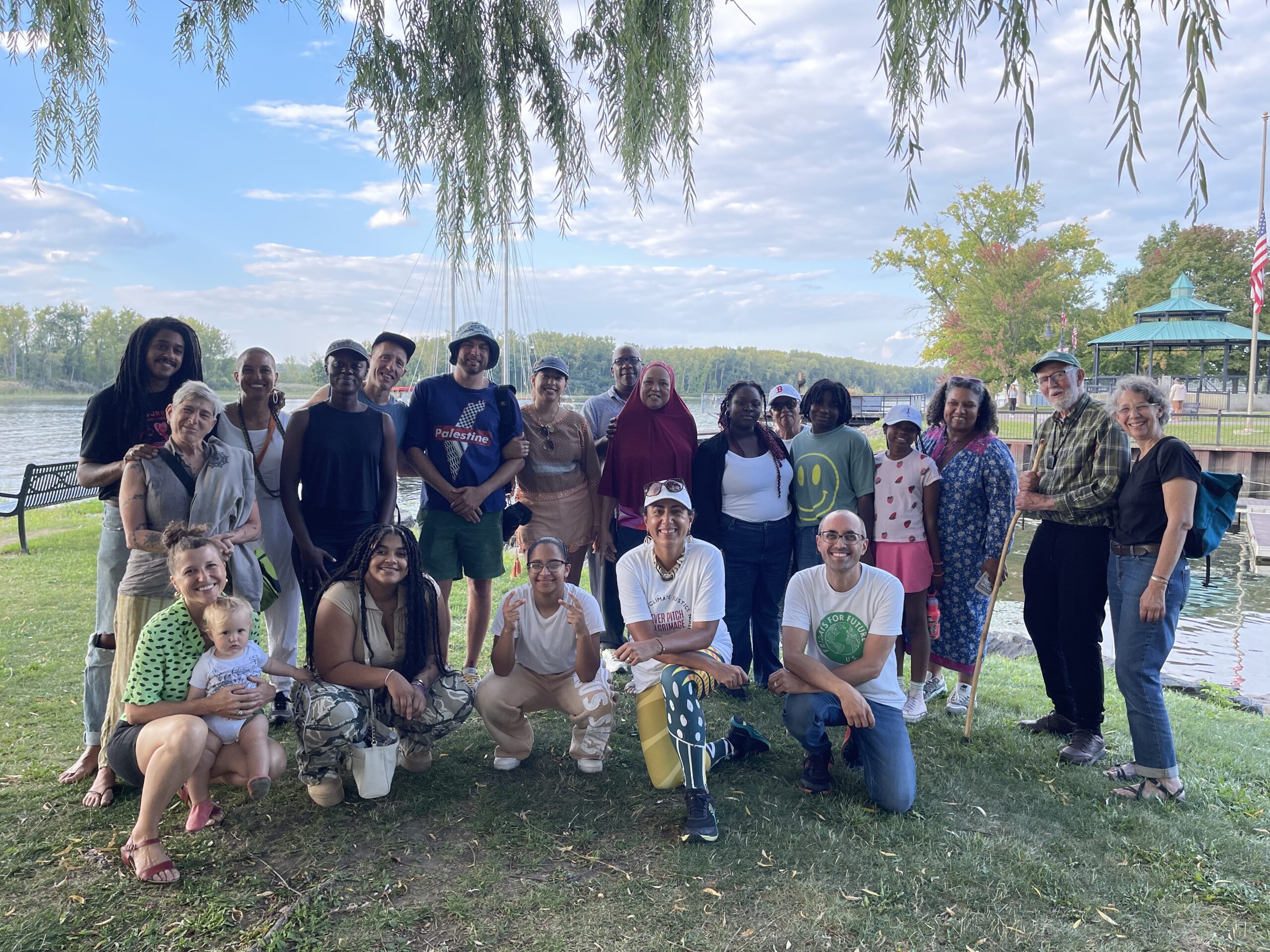Singing at the Hudson River in Albany to begin the pilgrimage with intention and community presence.