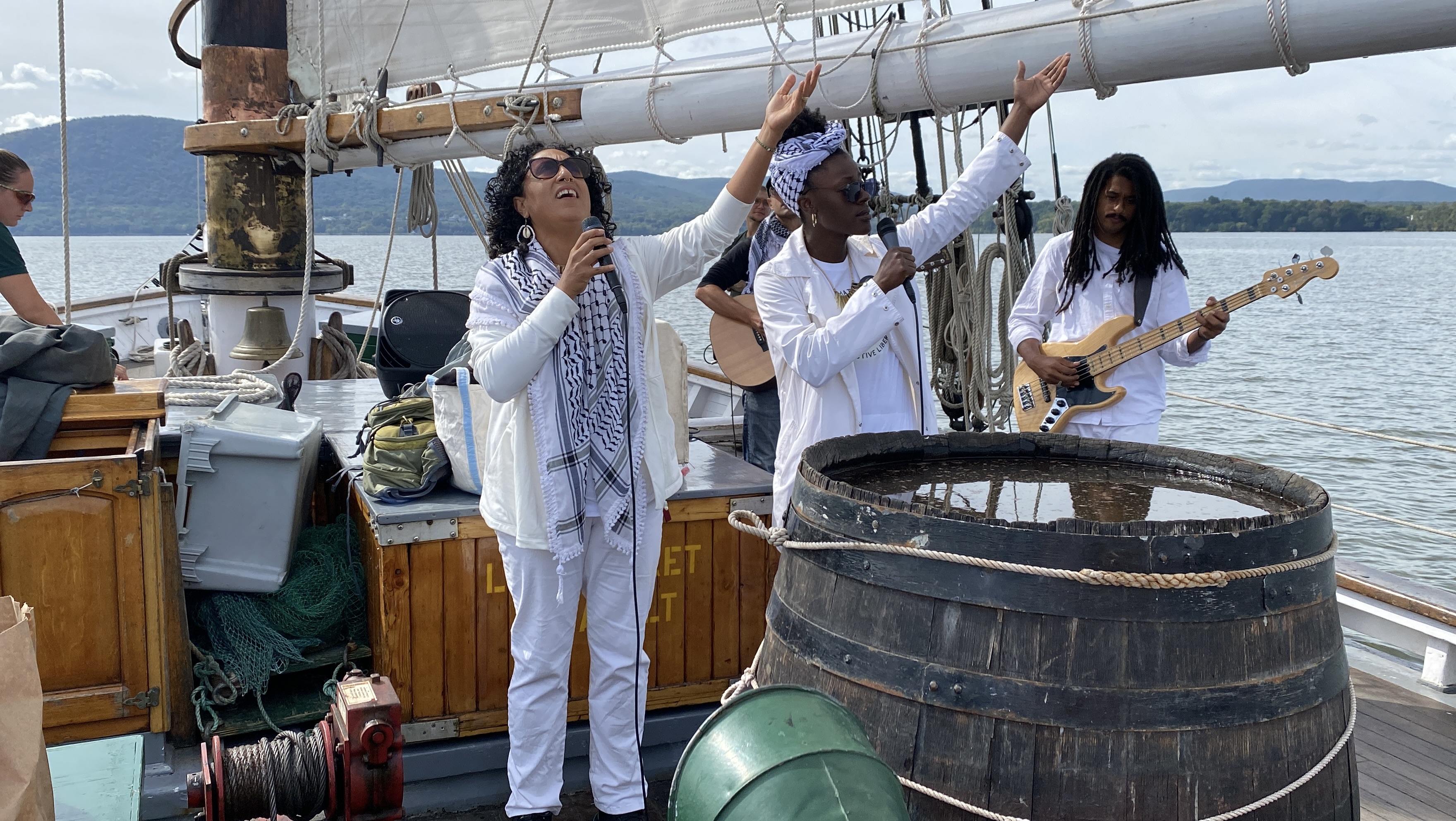 Sailing on the Hudson River Sloop Clearwater for a water ceremony and performance, and a generous ride to Bear Mountain.