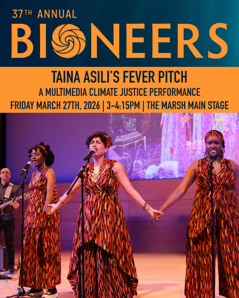 Taína Asili is bringing her groundbreaking multimedia climate justice show Fever Pitch to Bioneers on March 27th, 2026 from 3–4PM on The Marsh Main Stage. Blending powerful live music with dynamic choreography, original documentary footage, and visually immersive storytelling, Fever Pitch is a genre-defying performance experience rooted in Taína’s two-decade journey as an artist committed to climate and social justice.