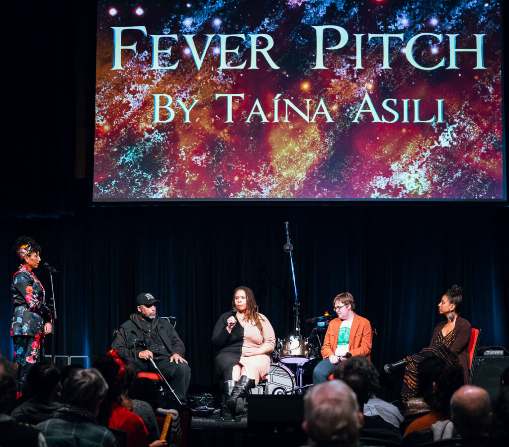 Fever Pitch is a groundbreaking multimedia show rooted in Taína Asili’s prolific two-decade artistic journey creating music that addresses the intersectional issues related to the urgency of climate change. Fever Pitch uses Asili’s original body of work to inspire climate justice action on local, national, and global scales. It is a one-hour spectacle that seamlessly blends live music, dance, and projections. Asili’s live music, performed by her exceptionally talented musicians, harmonizes with the choreography crafted by Gregory Theodore Marsh, guiding the movements of two phenomenal dancers/vocalists. Adding visual depth, the show weaves a mesmerizing kaleidoscope of original footage drawn from Asili’s award-winning documentaries and music videos. Fever Pitch isn’t just a performance; it’s an invitation into the radical imagination, where new and creative ways of living harmoniously with each other and our Earth unfold.