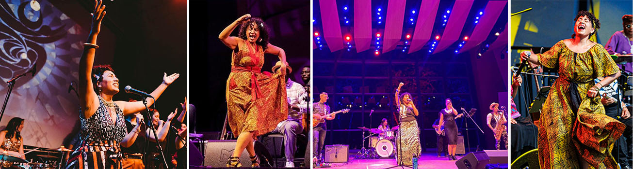 Taína Asili is a singer, composer, educator, interdisciplinary artist, and activist carrying on the tradition of her Puerto Rican ancestors, fusing past and present struggles into one soulful and defiant voice. For over 25 years she has brought the music of love and liberation to venues across the globe – From the Women’s March on Washington to Lincoln Center to San Francisco Pride. Taína Asili combines powerful vocals and an energetic multi-genre fusion – traversing salsa, rock, reggaeton, Afrobeat, and other global sounds – with multilingual songs that beat with the heart of social change. Her performances are adaptable to a wide range of venues, from electrifying full-band sets featuring a dynamic ensemble of 6 to 8 musicians—including guitar, bass, drums, congas, horns, and backing vocalists—to intimate solo shows accompanied by vibrant, high-quality backing tracks. Taína’s performances exude strength of Spirit, inspiring audiences to dance to the rhythm of rebellion! Watch Taína Asili perform live!